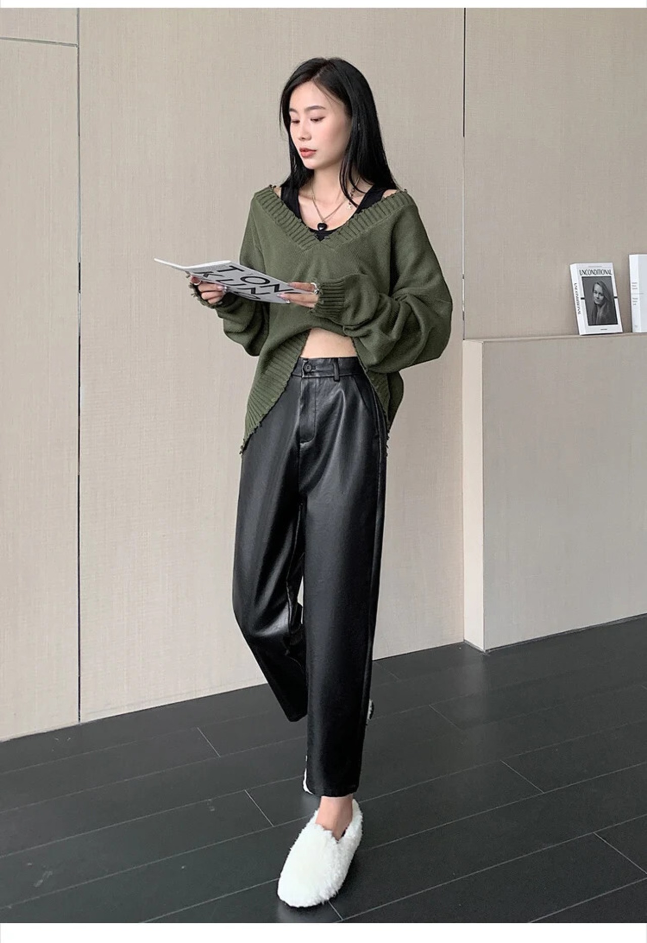 送料無料 アパレル 黒 Pu レザーハーレムパンツ女性 2023 秋冬ウエスト 9 ポイントブーツズボンシックなスリムフィットストリートウェア ブラック オータム 秋物 ウィンター 冬物 AE122232239745122212 | mihatudai(みはつばい)ネットショッピングならmihatudai