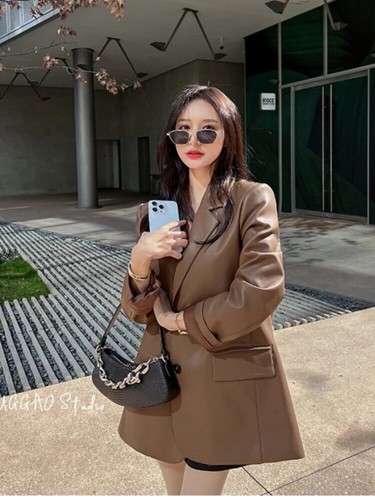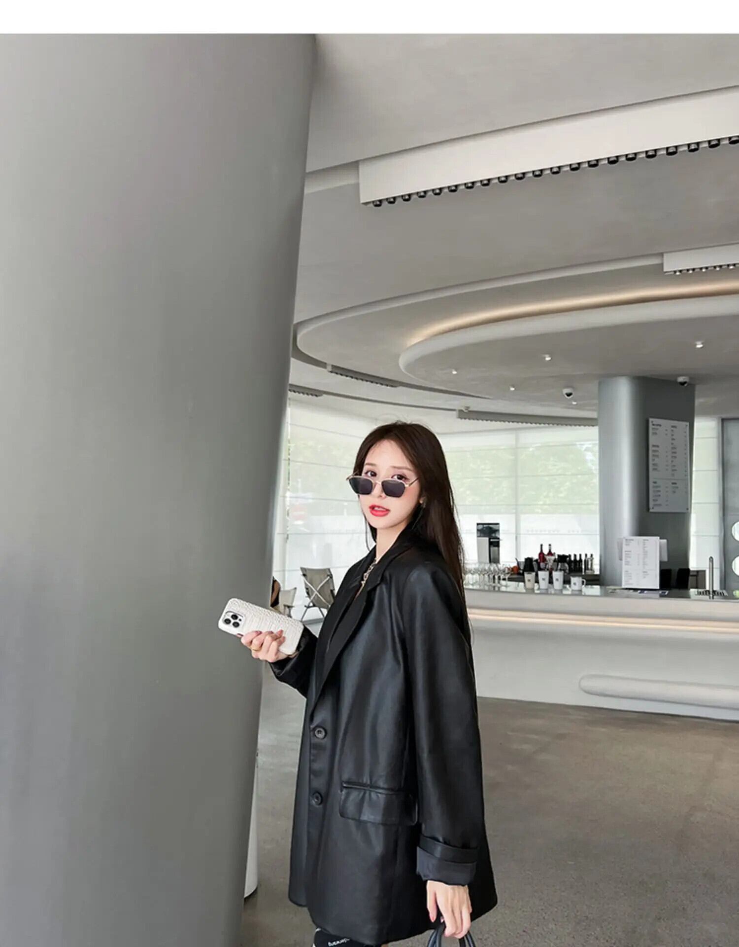 送料無料 アパレル レトロ Pu レザースーツジャケット女性春黒ブレザー高級ルーズカジュアル生き抜くコート ブラック スプリング 春物 AE122232272626916265 | mihatudai(みはつばい)ネットショッピングならmihatudai