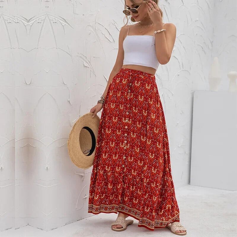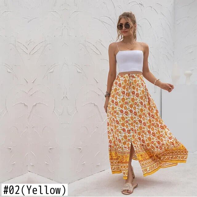 送料無料 アパレル 夏花柄シフォンビーチスカート 2021 女性ヴィンテージスリットウエストサンドレス女性ボヘミアン休暇ロングスカート サマー 夏物 ビンテージ AE122232222532729783
