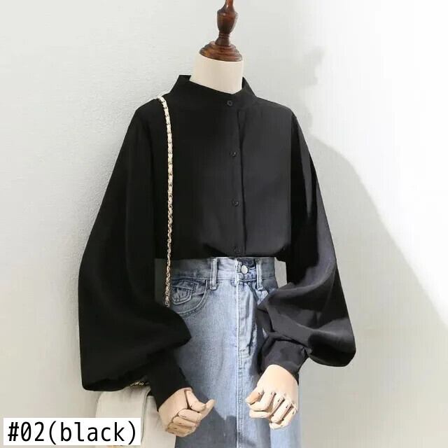 送料無料 アパレル ランタンスリーブブラウス女性シングルブレストスタンドカラーシャツオフィスワーク固体ヴィンテージ黒生き抜くトップス ブラック ソリッドカラー ビンテージ 会社 学校 通勤や通学にも AE122232220086235256 | mihatudai(みはつばい)ネットショッピングならmihatudai