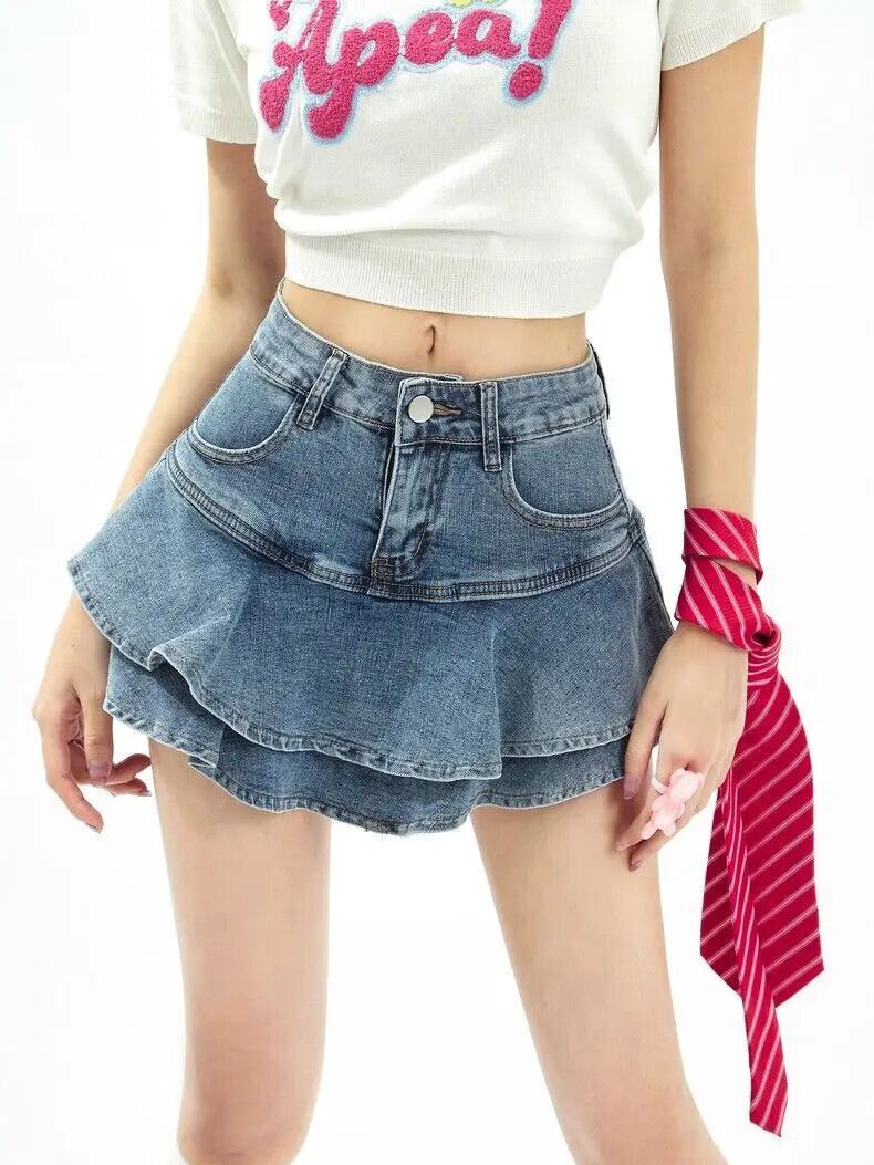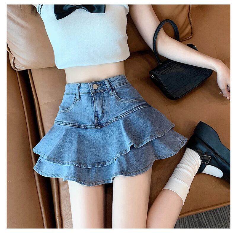 送料無料 アパレル フリルデニムミニスカート女性のセクシーなウエスト A ラインジーンズスカート夏プレッピースタイル段 Faldas Y2k ラッフル サマー 夏物 Aライン AE122232213422518518 | mihatudai(みはつばい)ネットショッピングならmihatudai