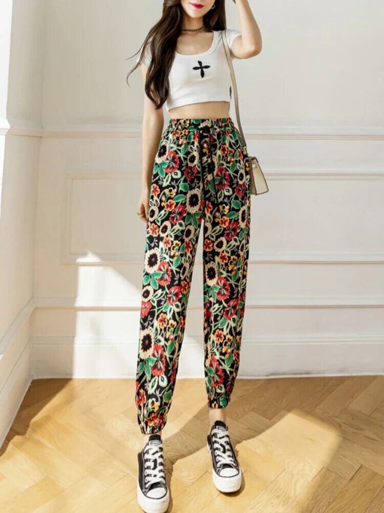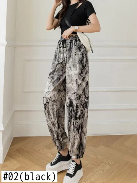 送料無料 アパレル JMPRS シフォンコルセットパンツ女性の 2022 夏オールマッチプリントアイスシルク 9 点ウエストハーレムパンツ サマー 夏物 AE122232286191355123 | mihatudai(みはつばい)ネットショッピングならmihatudai