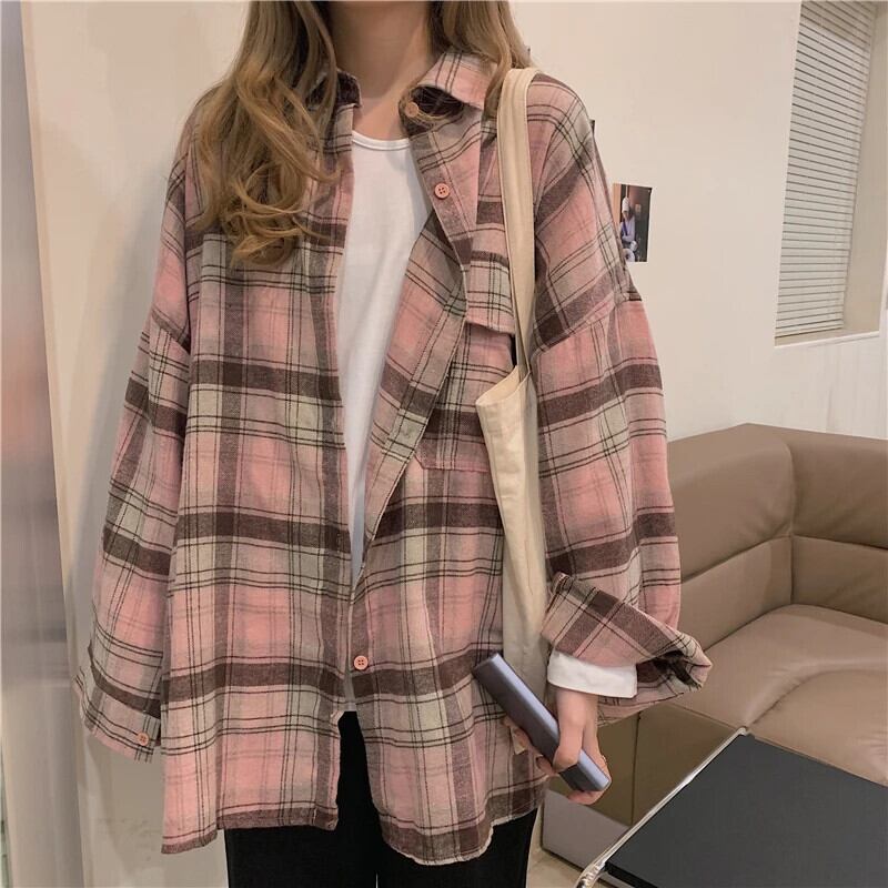 送料無料 アパレル レトロオーバーサイズピンクチェック柄シャツ女性秋長袖ブラウス Y2k 因果ルーズすべて一致トップス ロング AE122232285684002261 | mihatudai(みはつばい)ネットショッピングならmihatudai