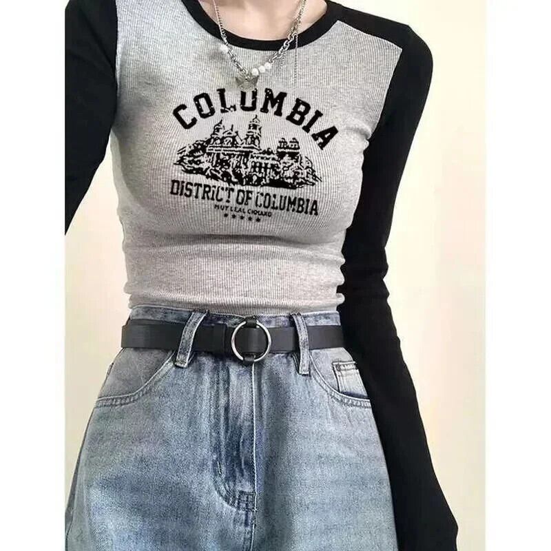 送料無料 アパレル レタープリントコントラストカラー Tシャツ女性長袖 O ネックパッチワークすべて一致トップススリムホットガール Kpop Tシャツ ロング Oネック AE122232235103973684 | mihatudai(みはつばい)ネットショッピングならmihatudai