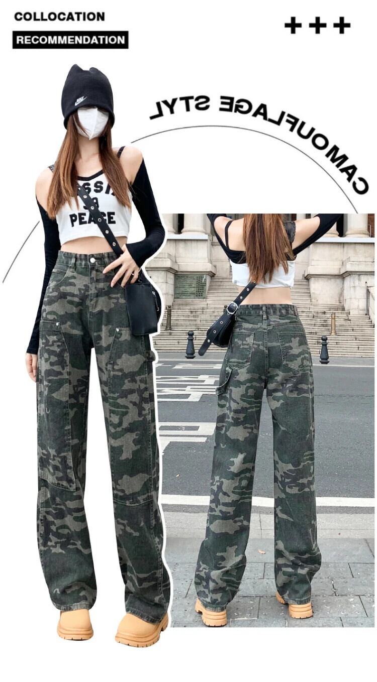 送料無料 アパレル アメリカン迷彩デニムパンツ女性の秋ウエストルーズヒップホップワイドレッグジーンズ Y2k レトロ生き抜くズボン オータム 秋物 ワイドパンツ AE122232284493562969 | mihatudai(みはつばい)ネットショッピングならmihatudai