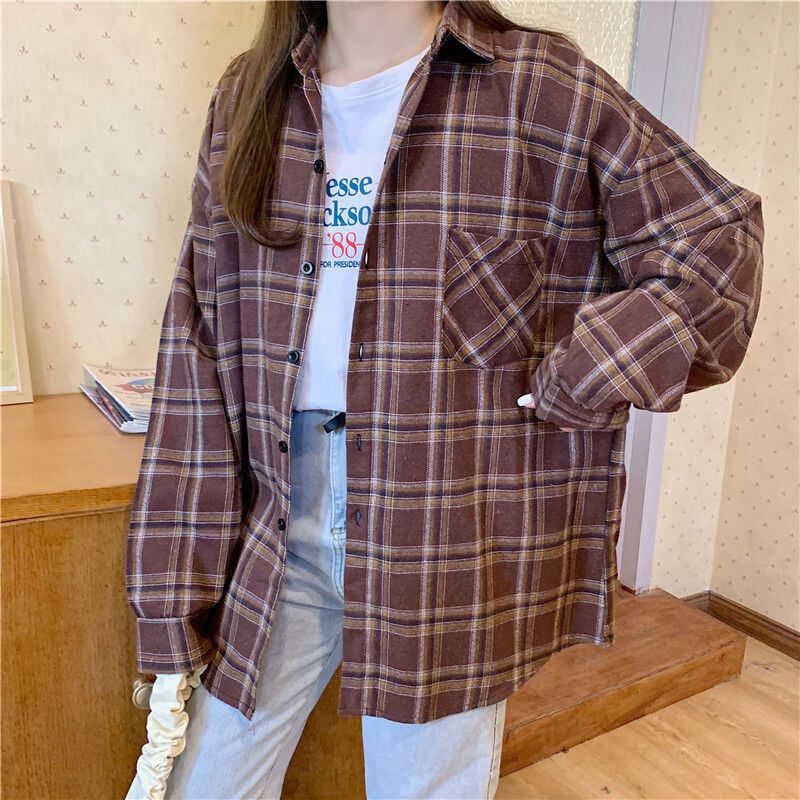 送料無料 アパレル レトロチェック柄シャツ女性春秋長袖オーバーサイズボタンアップシャツだぶだぶ生き抜くトップス ロング スプリング 春物 AE122232293549235113 | mihatudai(みはつばい)ネットショッピングならmihatudai