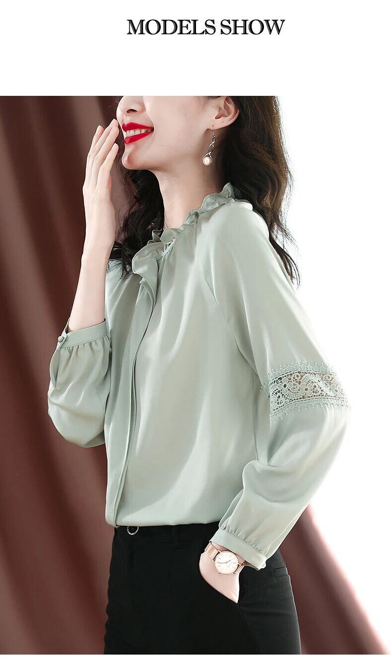 送料無料 アパレル Evnisigreen シフォン ブラウス シャツ Dames Herfst Lange Mouwen Kant ブラウス Zachte e All-Match Vakantie ブラウス グリーン AE12125556629942820792 | mihatudai(みはつばい)ネットショッピングならmihatudai