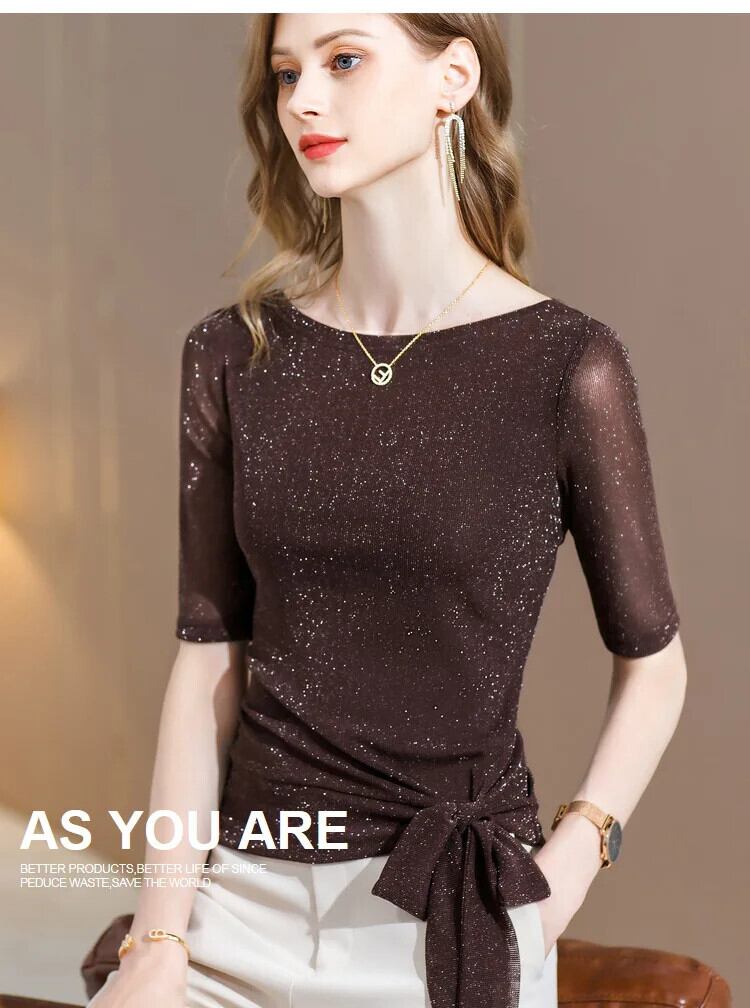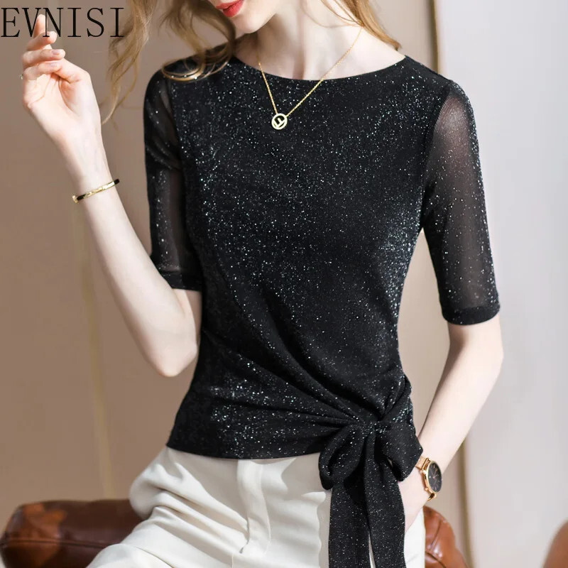 送料無料 アパレル EVNISI メッシュ Slanke Elastische Dieptepunt Tシャツ Voor Vrouwen Half Mouw Boog Zoom e Tシャツ オフショルダー モード トップス 2022 Zomer AE12125556627891138862 | mihatudai(みはつばい)ネットショッピングならmihatudai