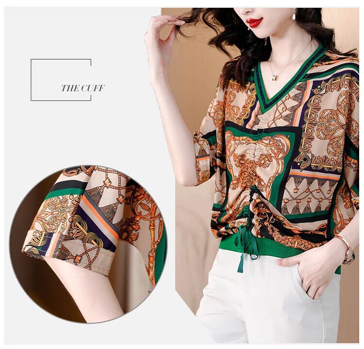 送料無料 アパレル Evnisi Vrouwen Chique ブルーメンプリント シフォン ブラウス V-Hals Korte Mouw e Office Losse トップス Voor Vrouwen シャツ Zomer 会社 学校 通勤や通学にも AE12125556613363909723 | mihatudai(みはつばい)ネットショッピングならmihatudai