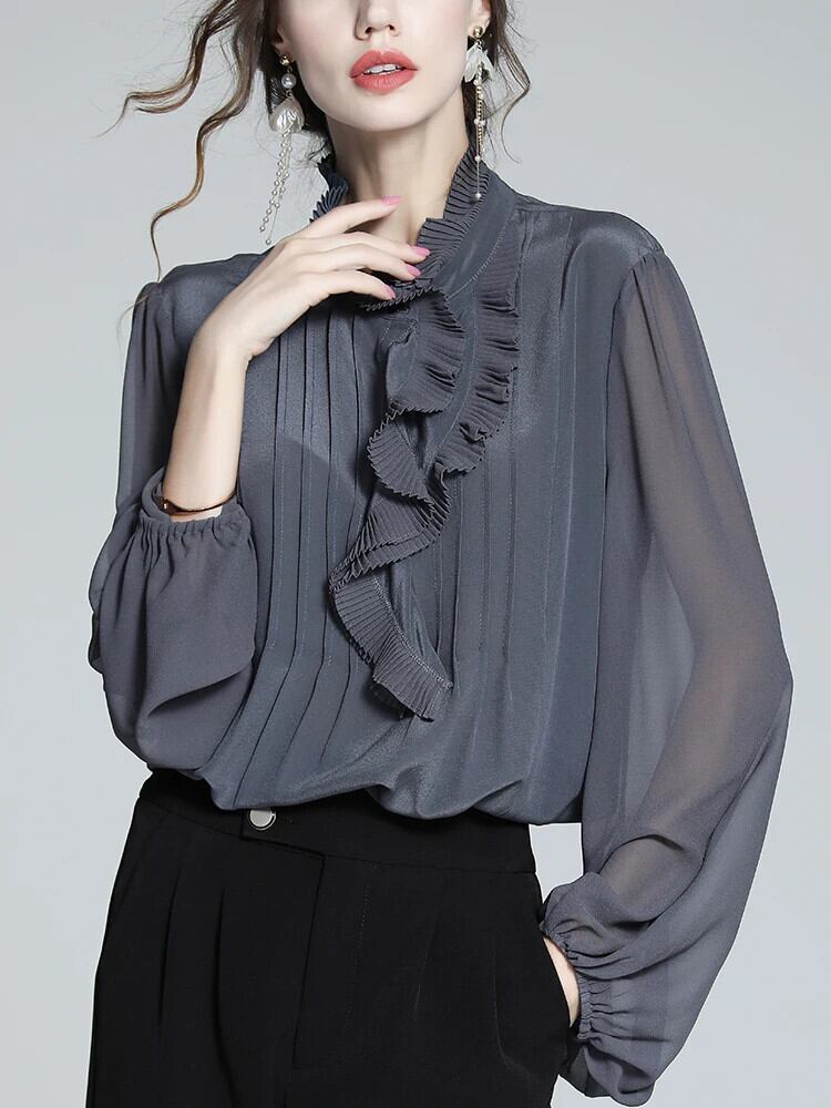 送料無料 アパレル Evnisi ヴィンテージ シフォン ルーシュ ブラウス Vrouwen Lente Herfst オフィス レディー フォールズ Lantaarn Mouwen Truien e シャツ Grijs Mode ビンテージ 会社 学校 通勤や通学にも AE12125556625588962095 | mihatudai(みはつばい)ネットショッピングならmihatudai