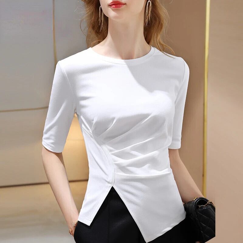 送料無料 アパレル Evnisi Zijde Witte Vrouwen Tシャツ Korte Mouw Zomer 2022 Sense Onregelmatige Zoom e Slanke Dieptepunt シャツトップ Tシャツ非対称 AE12125556646417995803 | mihatudai(みはつばい)ネットショッピングならmihatudai