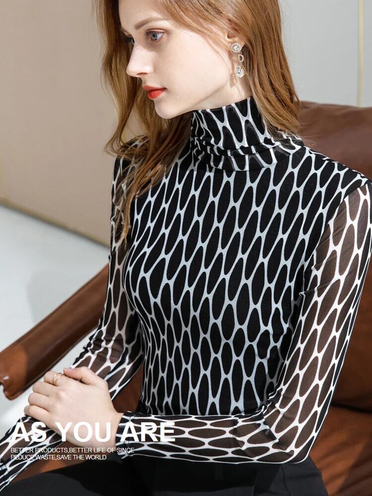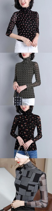 送料無料 アパレル Enisi Zwart Gaas Coltrui Slanke Bloemen Tシャツ Lange Mouwen メッシュ プリント Dieptepunt トップ Alle-Wedstrijd Tシャツ AE12125556645260950426 | mihatudai(みはつばい)ネットショッピングならmihatudai