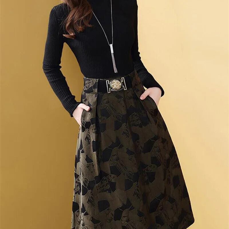 送料無料 アパレル EVNISI Lange mouwen Gebreide プリント Jurk Vrouwen Twee Stukken Van 2022 Herfst Nieuwe e Coltrui A-lijnKantor Dame ドレス AE12125556640747584275 | mihatudai(みはつばい)ネットショッピングならmihatudai