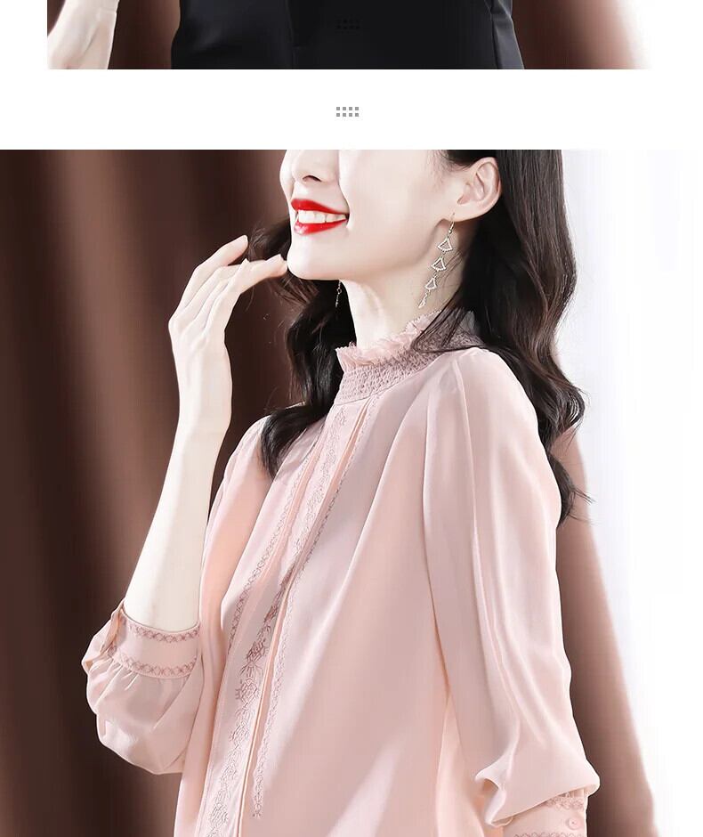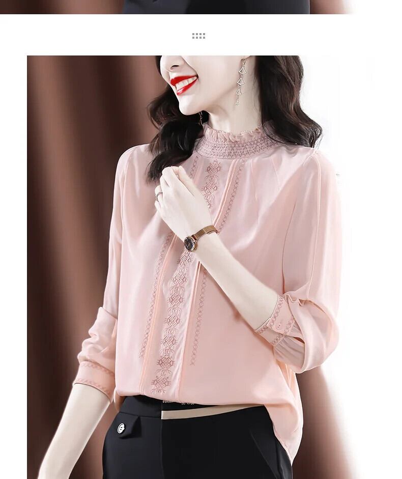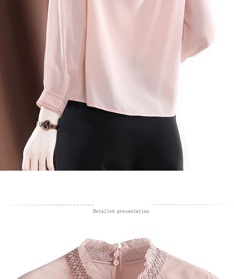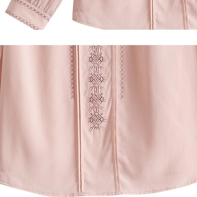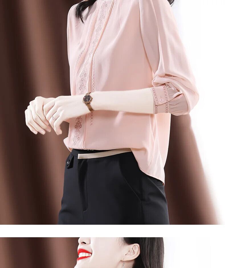 送料無料 アパレル Evnisiwomen Lange Mouwen シフォン ブラウス シャツ Herfst Roze Gedrapeerde Zijden トップ Alle-Match ソリッド Borduren ブラウス ソリッドカラー AE12125556624778476821 | mihatudai(みはつばい)ネットショッピングならmihatudai