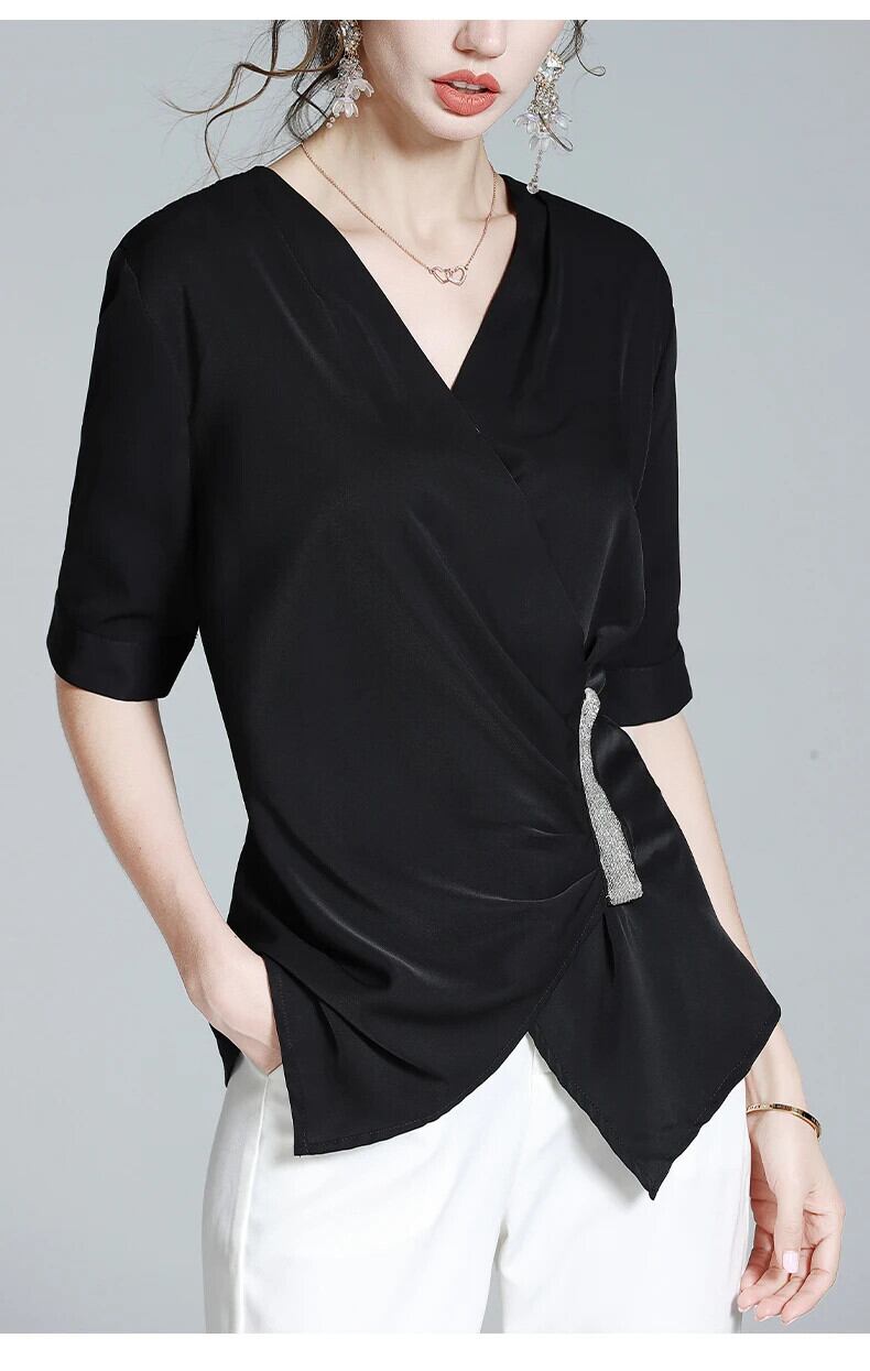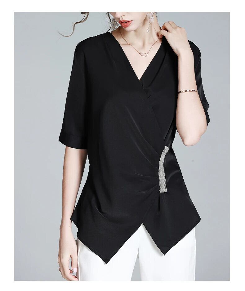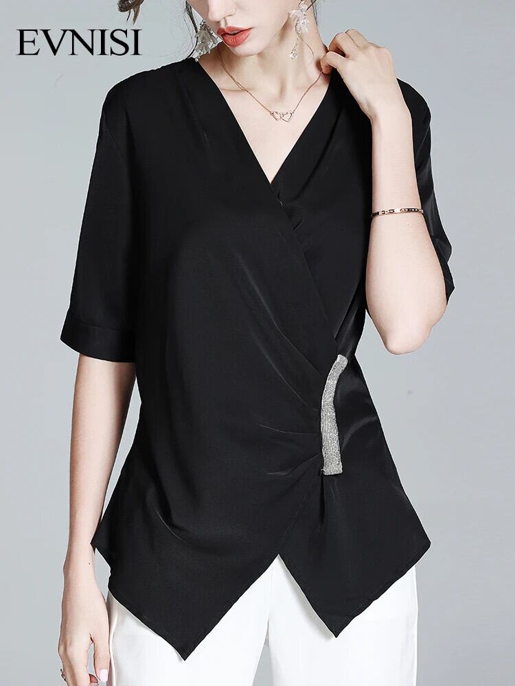 送料無料 アパレル Evnisi V-hals Zwart ブラウス Zomer シフォン ソリッド Korte Mouw スリム ブラウス Vrouwen トップス オフィス レディー 2022 ソリッドカラー 会社 学校 通勤や通学にも AE12125556628695716878 | mihatudai(みはつばい)ネットショッピングならmihatudai