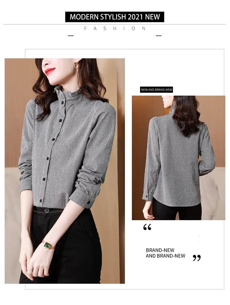 送料無料 アパレル Evnisi Zwart En Wit チェック柄ブラウス Vrouwen 2022 Herfst Lange Mouwen Verstoorde Hals ボタンアップ シャツ カントール レディース ブラウス AE12125556623867711037 | mihatudai(みはつばい)ネットショッピングならmihatudai