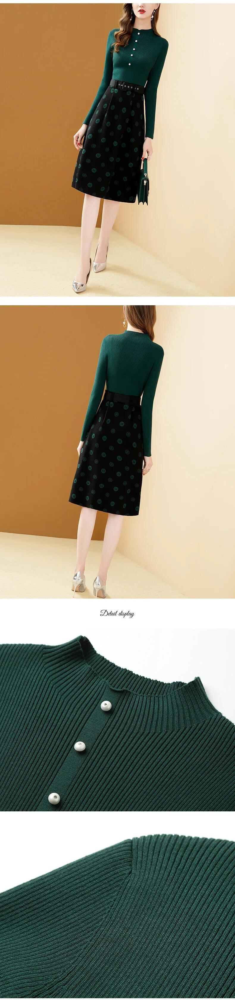 送料無料 アパレル Evnisi Lange Mouwen Gebreide プリント ドット Jurk Vrouwen Nep Twee Stukken Van 2022 Lente e Knop Up A-lijn オフィス レディー Vestido 会社 学校 通勤や通学にも AE1212555664418971338 | mihatudai(みはつばい)ネットショッピングならmihatudai