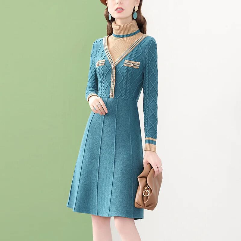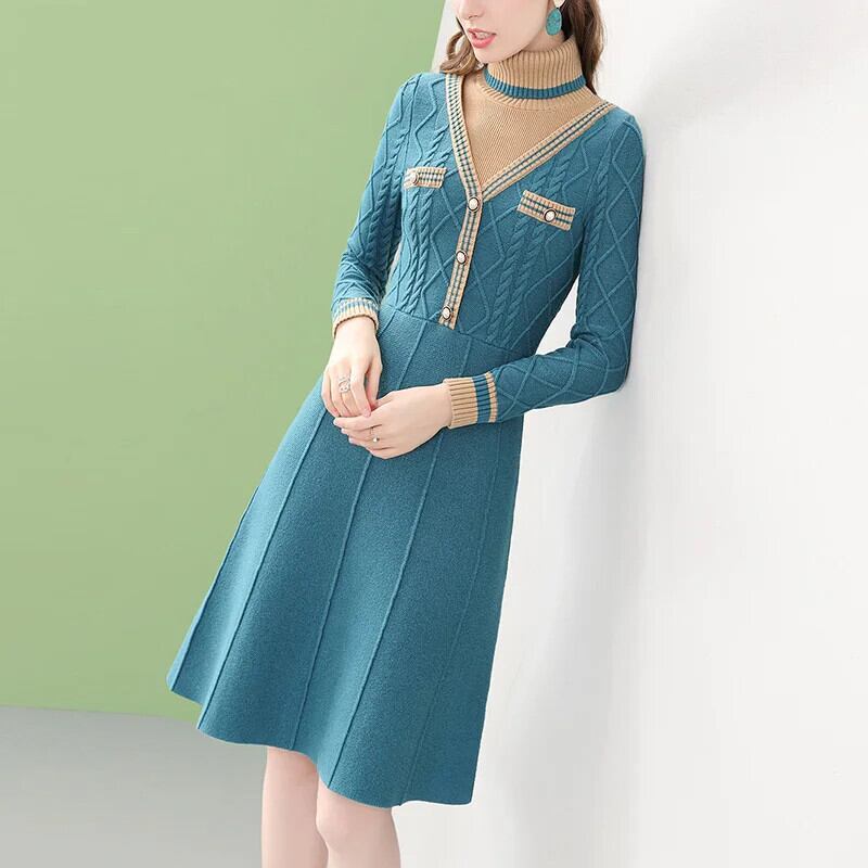 送料無料 アパレル Blauw Gebreide Warme Trui Jurken 2021 Nieuwe Ontwerp パッチワーク Coltrui Twist A-lijn e Jurk Voor Vrouwen Mode Slanke Kleding AE12125556683464918645 | mihatudai(みはつばい)ネットショッピングならmihatudai