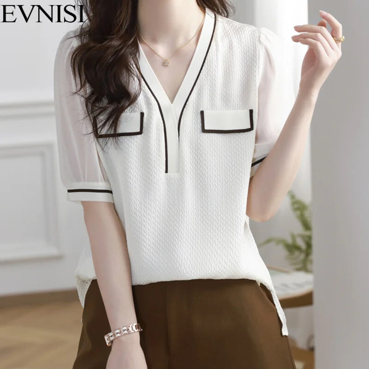 送料無料 アパレル Evnisi エレガント Frauen weiß Tシャツ V-Ausschnitt Seide Kurzarm Büro トップス schick für Frauen loss Tシャツ Summe Strick hemd AE12125556612941805590 | mihatudai(みはつばい)ネットショッピングならmihatudai