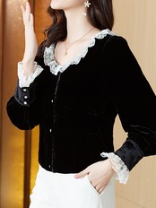送料無料 アパレル Evnisi ヴィンテージ カント パッチワーク Fluwelen Zwart シャツ Vrouwen フレア Mouw ルーシュ ボタンアップ e ブラウス Lange Mouw スイート シック トップ 大人ガーリー スウィート キュート カジュアル ビンテージ AE12125556645236900168 | mihatudai(みはつばい)ネットショッピングならmihatudai