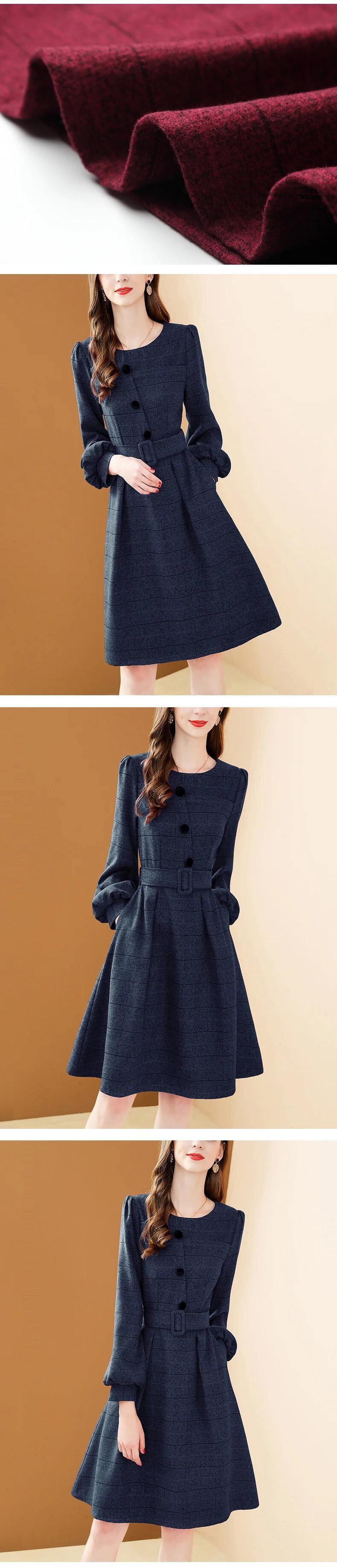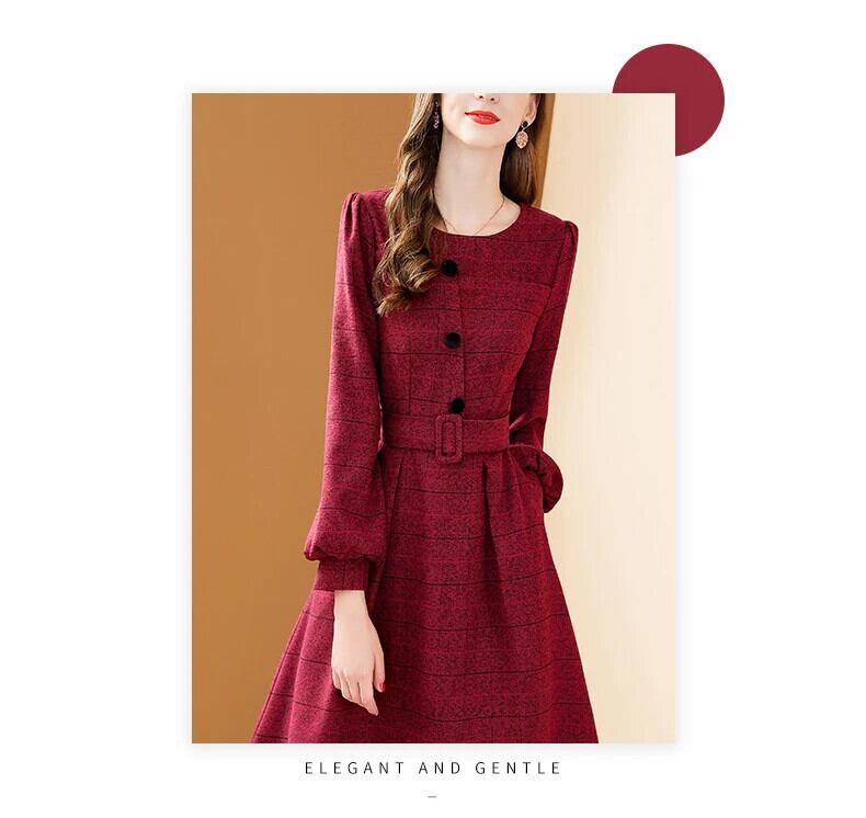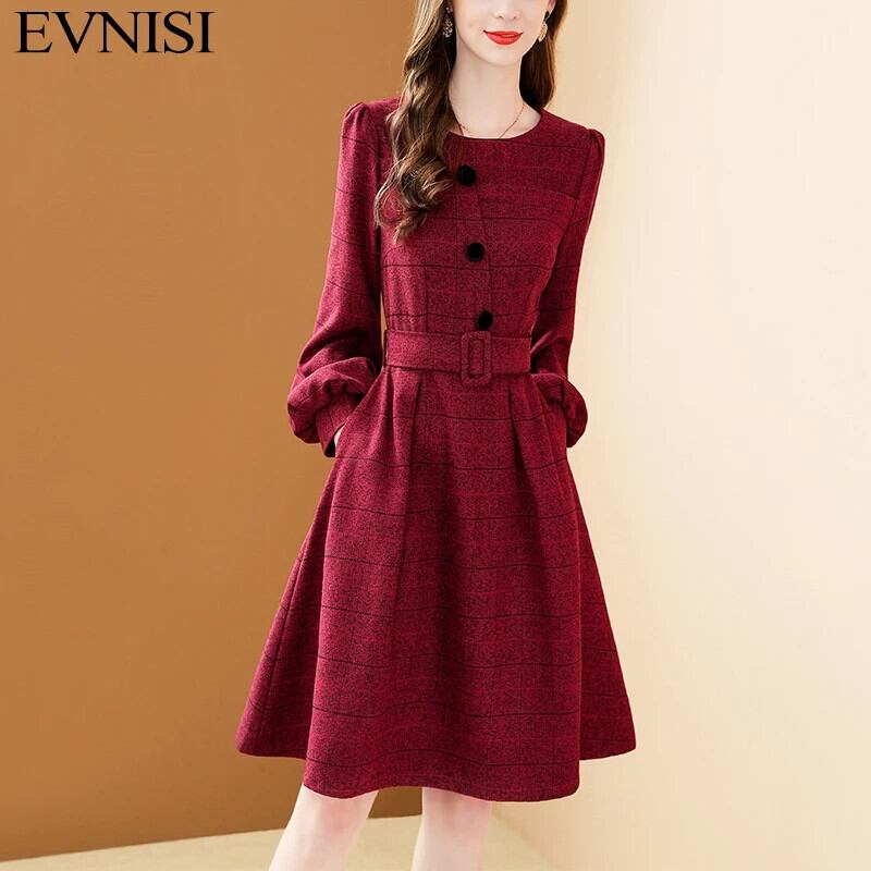 送料無料 アパレル EVNISI ヴィンテージ Rode Geruite Jurk Vrouwen Winter 2022 Nieuwe O-hals Slanke Wollen A-lijn Lantaarn Mouw Jurk Met Riem ストリートウェア Gewaad ウィンター 冬物 ビンテージ AE12125556611085840713 | mihatudai(みはつばい)ネットショッピングならmihatudai