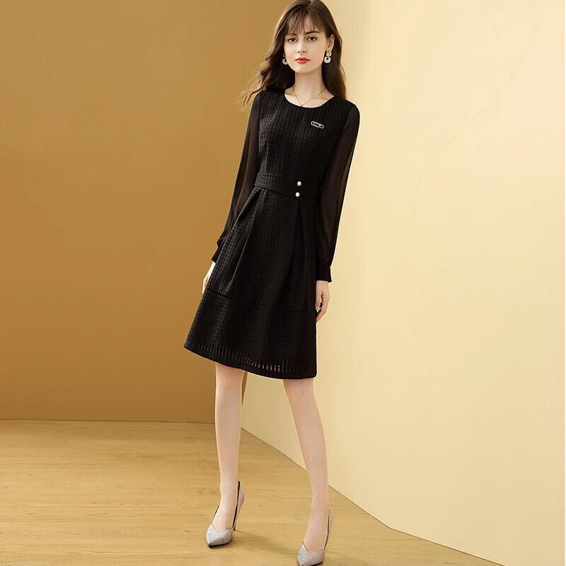 送料無料 アパレル Evnisi Zwarte Plaid e Jurk Vrouwen Herfst O-hals Lange Mouwen A-lijn GebreideKantor Dame Jurk Alle-Wedstrijd Slanke ドレス AE12125556613789095383 | mihatudai(みはつばい)ネットショッピングならmihatudai
