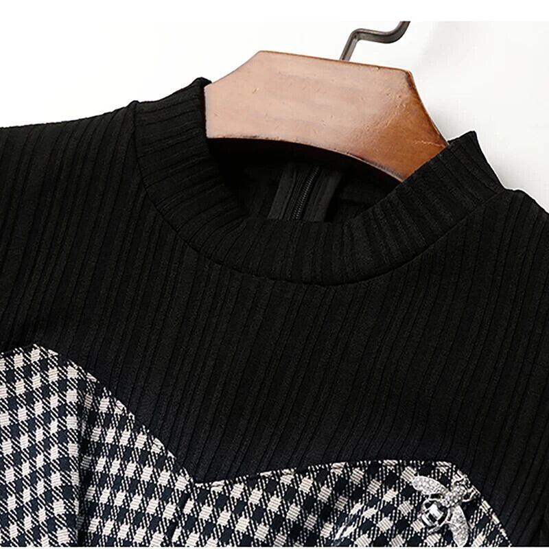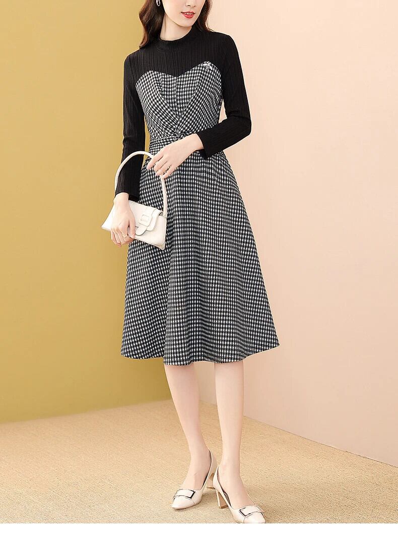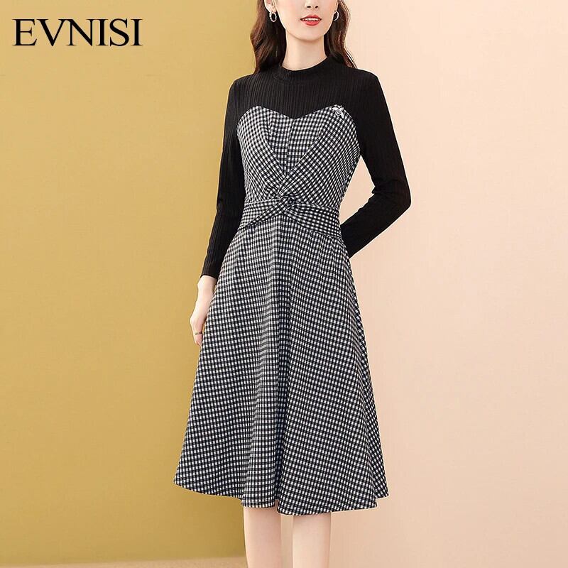 送料無料 アパレル Evnisi Zwarte Gebreide Stiksels Plaid Jurk Vrouwen Mid-Lengte Winter Slanke Jurk Lange Mouwen ホリデー パーティー Vestidos ウィンター 冬物 AE12125556623571170040 | mihatudai(みはつばい)ネットショッピングならmihatudai