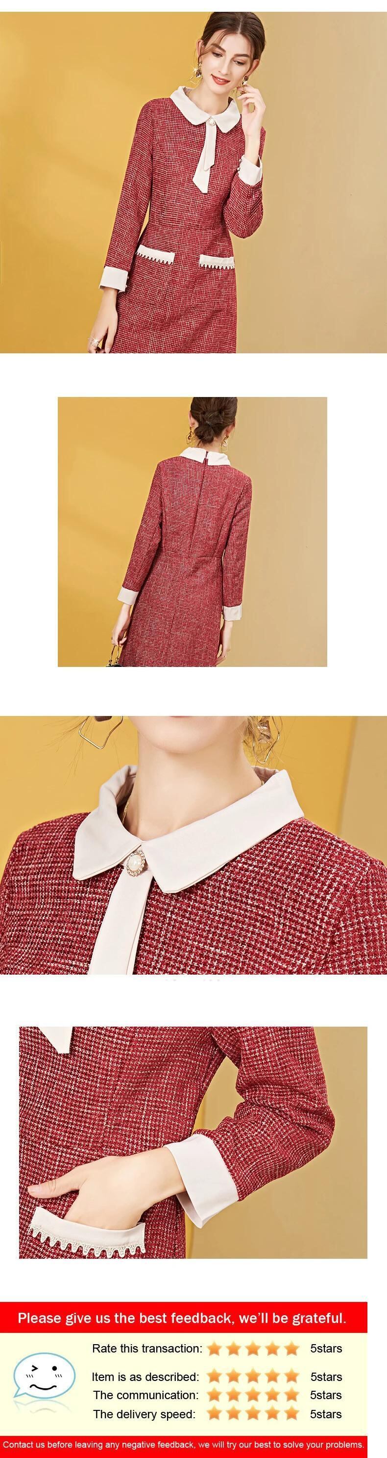 送料無料 アパレル Evnisi Rode チェック柄パッチワーク Gebreide Jurk Peter Pan Kraag Zakken Slim A-lijn Jurken EenvoudigeKantor Dame e Vestidos スリム AE12125556640708178758 | mihatudai(みはつばい)ネットショッピングならmihatudai