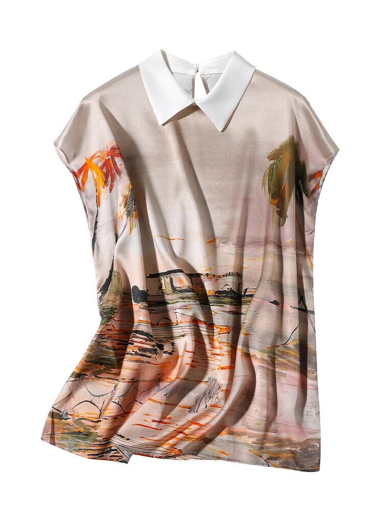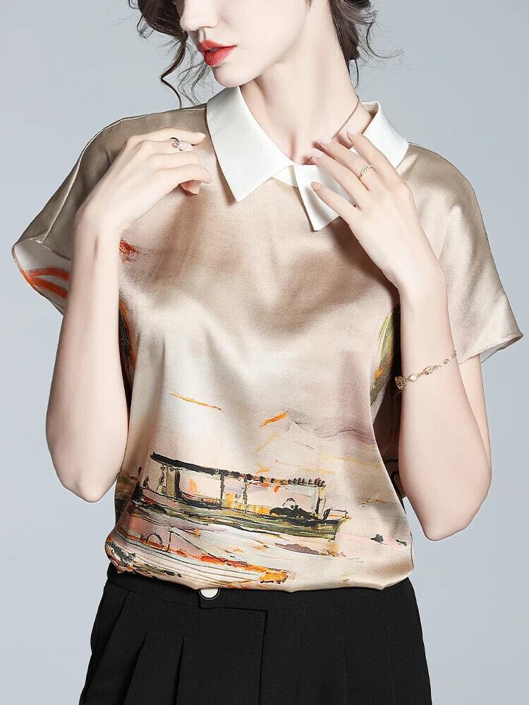 送料無料 アパレル Evnisi Zijde Satijn シャツ Zomer Mode ブルーメンプリント ブラウス Dames Turn Down Kraag Tops Vrouwen Korte Mouw AE12125556613948264109 | mihatudai(みはつばい)ネットショッピングならmihatudai