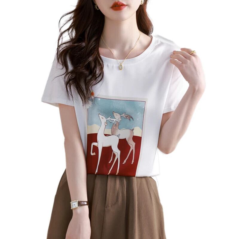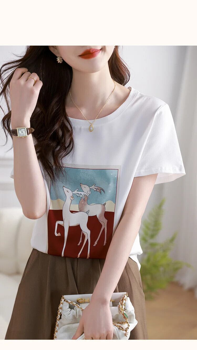 送料無料 アパレル Evnisi Wit Kataen Voor Vrouwen Losse Tシャツ Met Bloemenprint Tシャツ Met Korte Mouw DamesKantor Gebreide トップス Summe AE12125556689841576195 | mihatudai(みはつばい)ネットショッピングならmihatudai