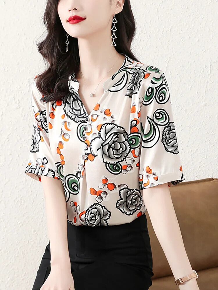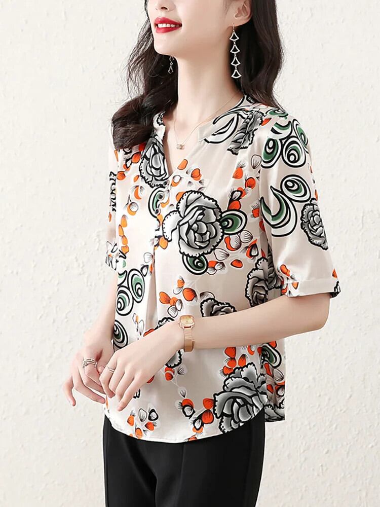 送料無料 アパレル Evnisi 快適な Gedrukt Bloemen シフォン ブラウス Boho 2022 Zomer Nieuwe Losse シャツ Voor Vrouwen V-hals ホリデー ブラウス AE12125556616899382553 | mihatudai(みはつばい)ネットショッピングならmihatudai