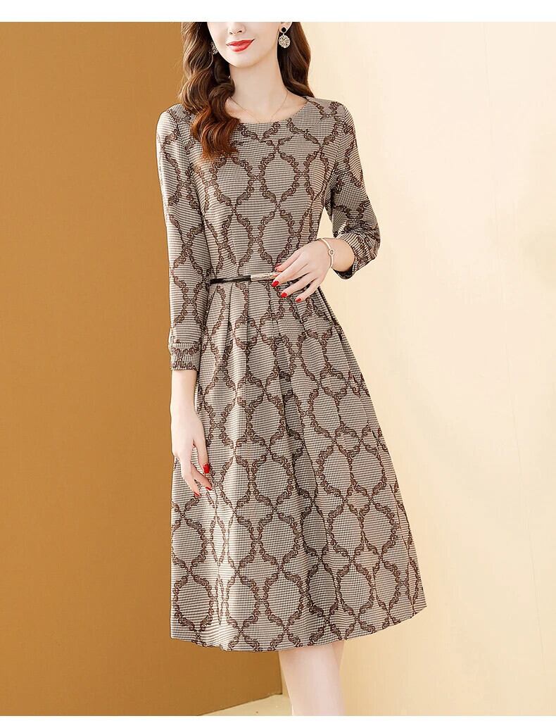 送料無料 アパレル Evnisi Franse プリント Kaki Jurk Vrouwen Winter Lange Mouwen A-lijn O-hals Slim Jurken Holiday Vestidos ウィンター 冬物 スリム AE12125556691250557153 | mihatudai(みはつばい)ネットショッピングならmihatudai