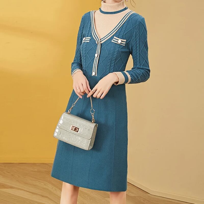送料無料 アパレル EVNISI-レディースのためのエレガントでスリムなブルーのニットドレス,2ピース,秋,冬,ノベルティ AE12125556633485938207 | mihatudai(みはつばい)ネットショッピングならmihatudai
