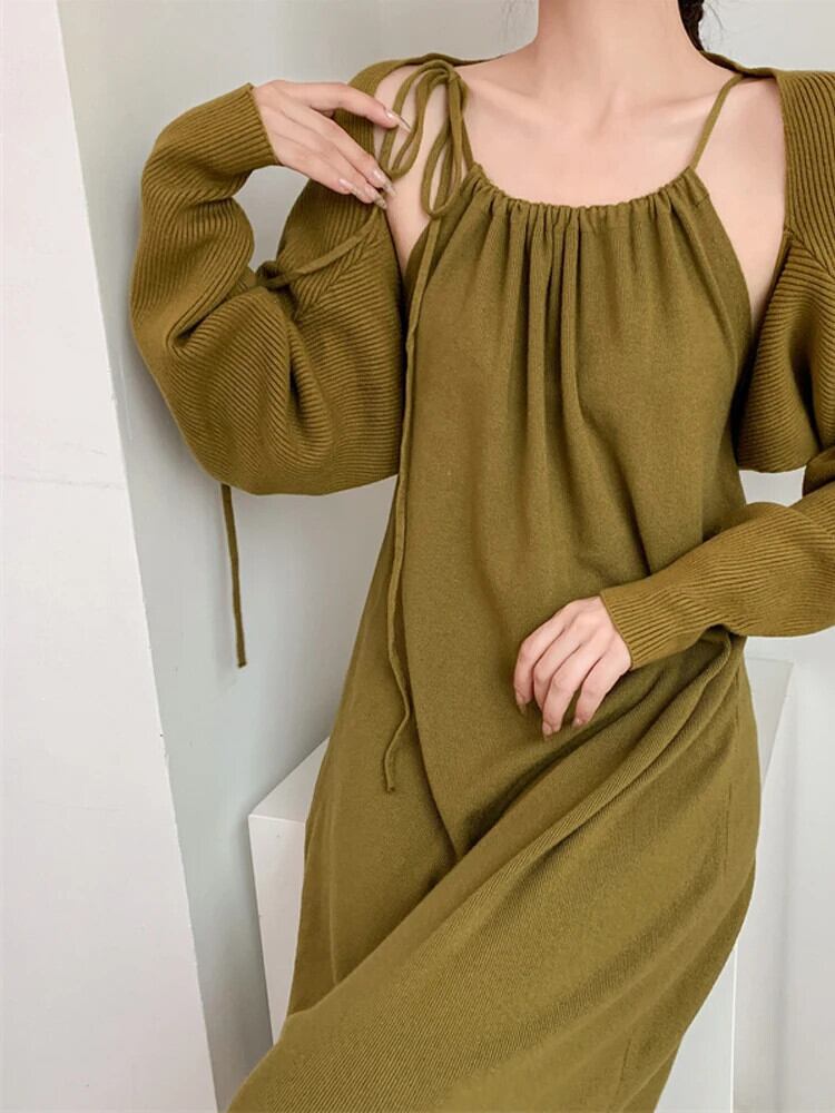 送料無料 アパレル EVNISI e Gestrickte Kreuz ホルターランゲ クレイド 2 スタック セット Frauen Herbst Frühling Büro Dame Chic クラブ パーティー Kleider セット プルオーバー AE12125556621972988116 | mihatudai(みはつばい)ネットショッピングならmihatudai