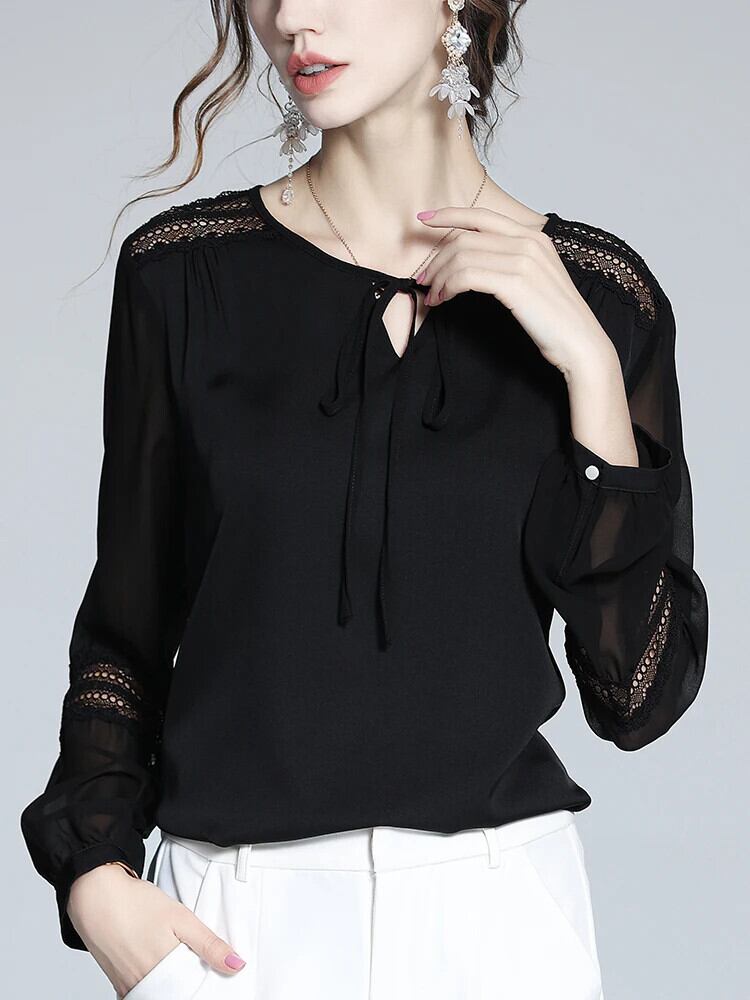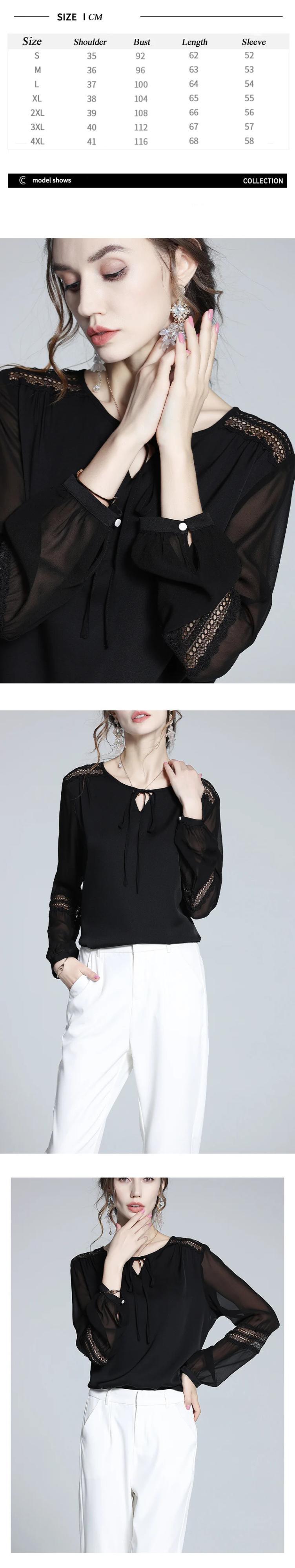 送料無料 アパレル EVNISI Schwarze Bluse Frauen Vintage e Aushöhlen Chiffon Hemd Weibliche Bluse Lange Hülse Lose Tops Blusa シフォン ビンテージ AE12125556629031100898 | mihatudai(みはつばい)ネットショッピングならmihatudai