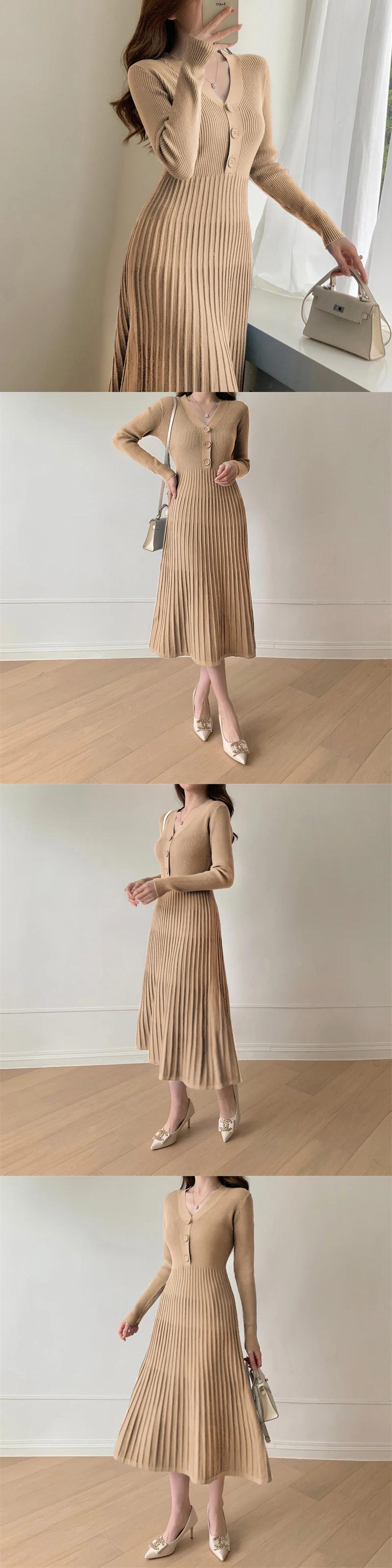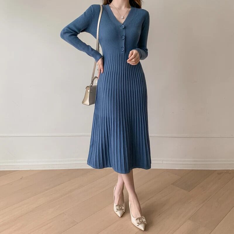 送料無料 アパレル EVNISI e Frau Frühling Herbst Tasten Strick Plissee Kleid V-ausschnitt Langarm Party A-line Kleid Für Frau Vestidos Aライン AE12125556625021398334 | mihatudai(みはつばい)ネットショッピングならmihatudai