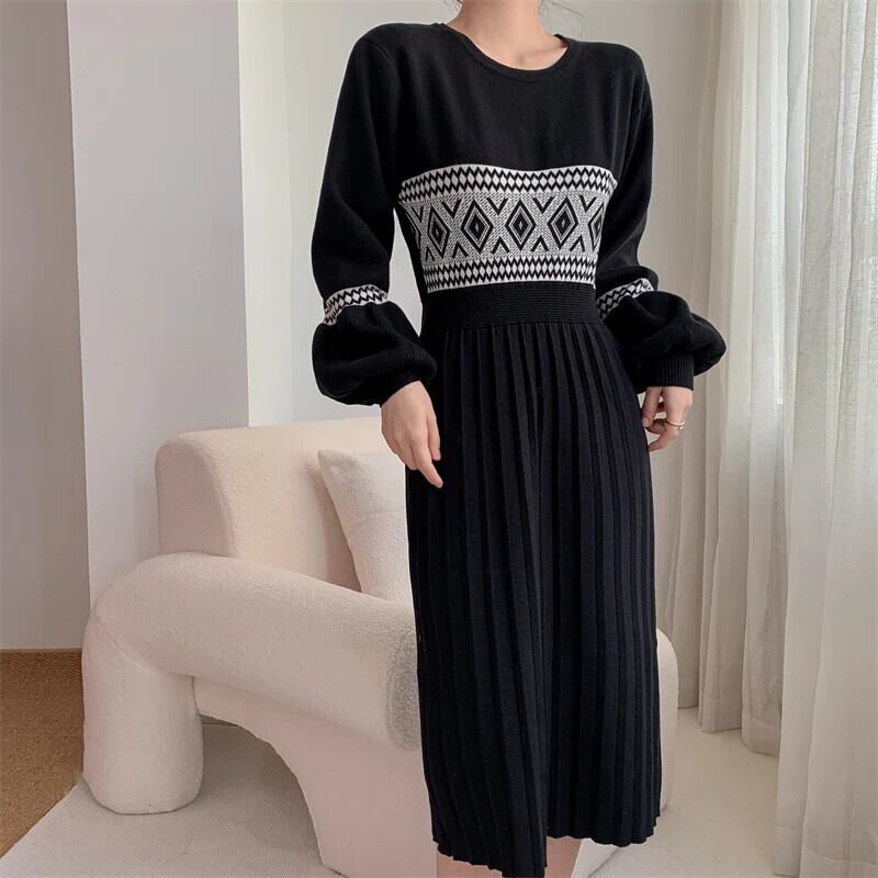 送料無料 アパレル Evnisi e Vrouw Gebreide ボディコン スリム Geplooide Lange Jurk Lantaarn Mouw O-hals Winter Mode Trui Jurken Vrouw Vestidos ウィンター 冬物 AE12125556675710484832 | mihatudai(みはつばい)ネットショッピングならmihatudai