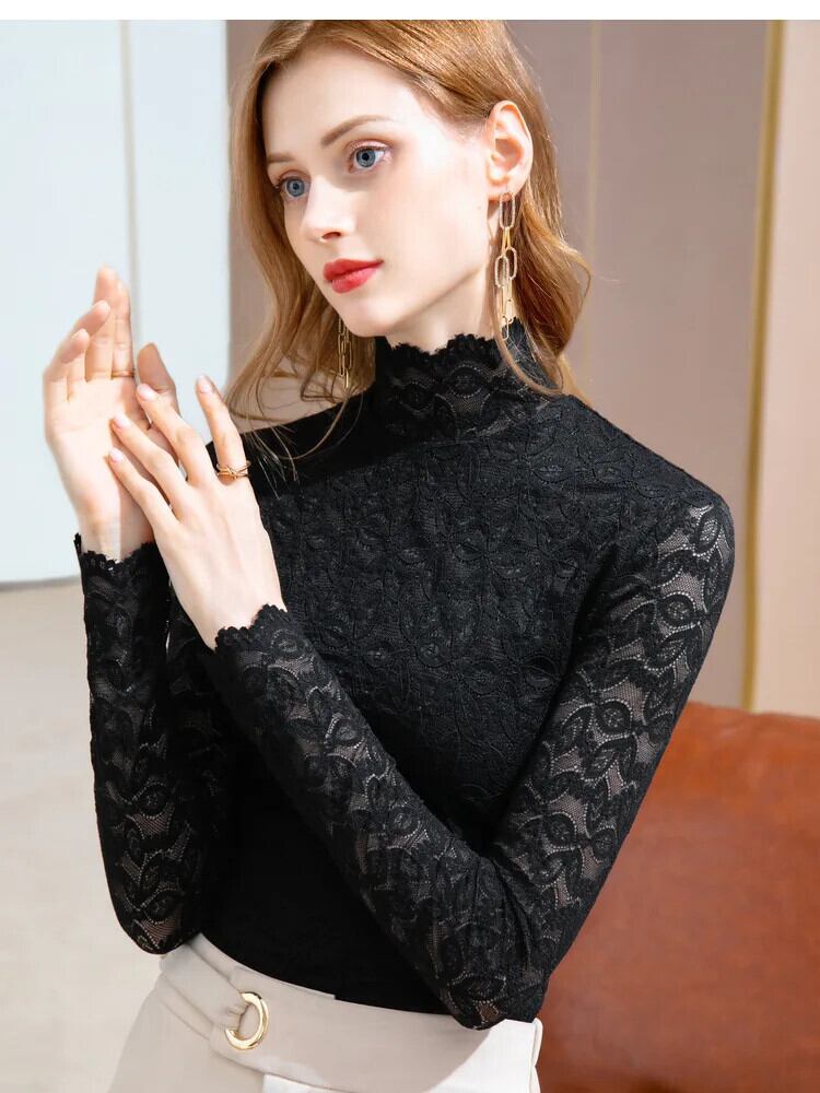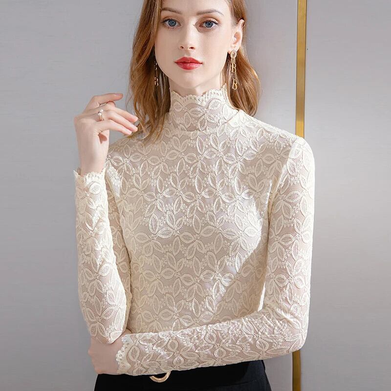 送料無料 アパレル EVNISI 2022 Frühling Neue Spitze Bodenbildung Bluse Frauen Gehäkelte Hohl Top Frauen Langarm e Rollkragen Alle-spiel Tops AE12125556642020719936 | mihatudai(みはつばい)ネットショッピングならmihatudai