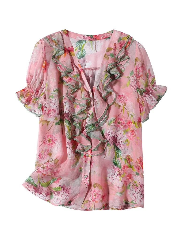 送料無料 アパレル EVNISI Seide Rosa 花柄トップス Frauen 2022 Sommer Neue Rüschen Französisch ヴィンテージ Bogen Bluse シフォン Büro Dame シャツ ビンテージ AE12125556648302198611 | mihatudai(みはつばい)ネットショッピングならmihatudai