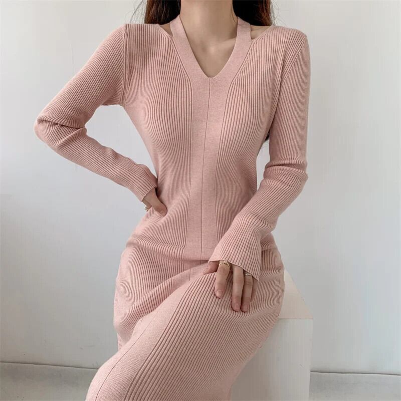 送料無料 アパレル Evnisi Vrouwen ホルター V-hals スリム フィット Gebreide セクシー ボディコン Jurk Solid Lange Mouwen Streep Jurken Street Vestidos ストリート ソリッドカラー AE12125556667076387617 | mihatudai(みはつばい)ネットショッピングならmihatudai