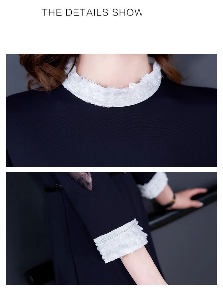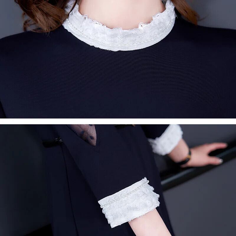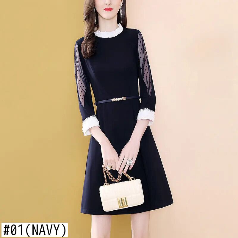 送料無料 アパレル EVNISI Vrouwen Marine Jurk Mesh Parel Lente O-hals Mode Sjerpen Hoge Taille A-lijn Jurken Knielange Splic Blauw OL Jurk メッシュ AE12125556649188791762 | mihatudai(みはつばい)ネットショッピングならmihatudai