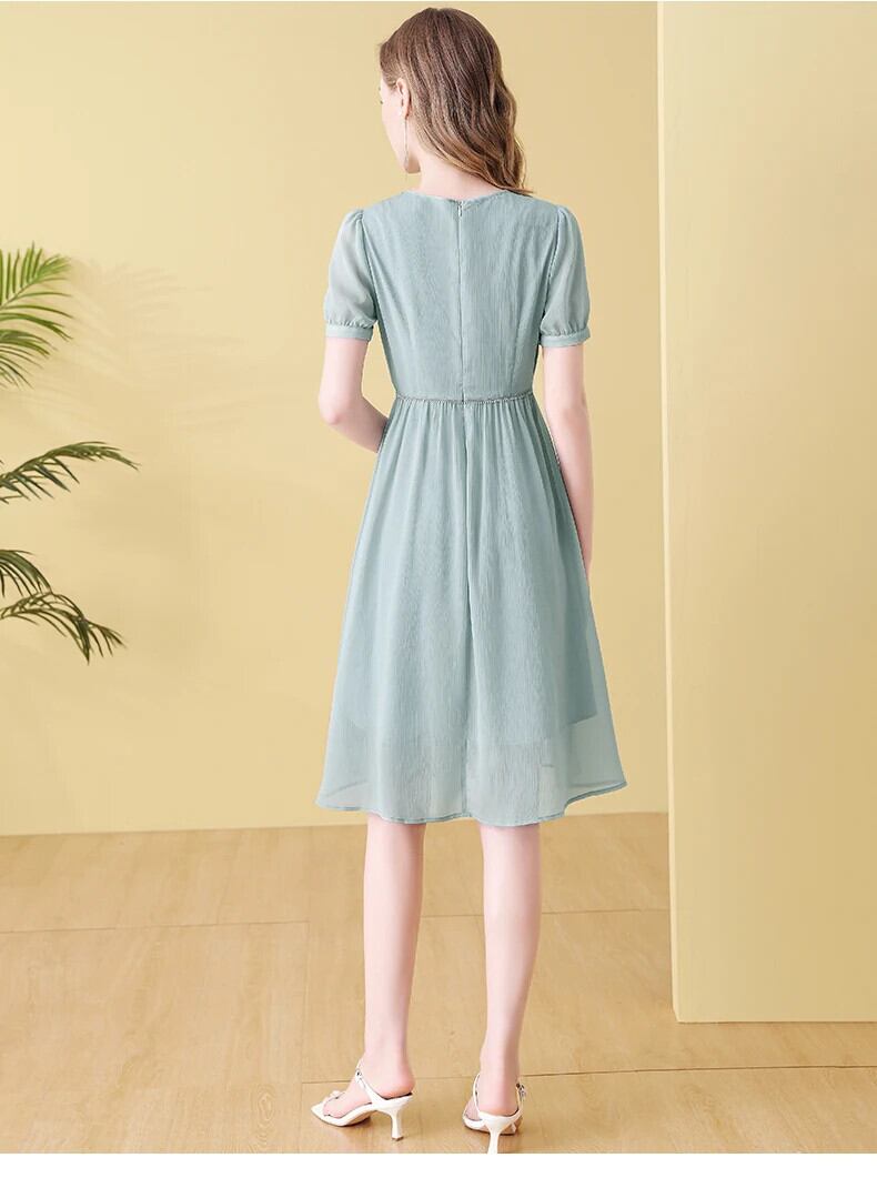 送料無料 アパレル EVNISI Grün Rüschen Kurzarm Chiffon-Kleid Sommer Solide Sashe Vacaiton Strand Party Kleider A-Linie Süße Vestidos シフォン ソリッドカラー AE12125556631319581397 | mihatudai(みはつばい)ネットショッピングならmihatudai
