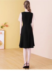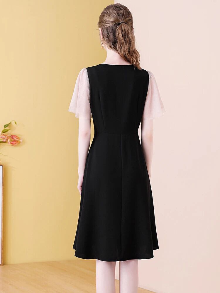 送料無料 アパレル EVNISI Schwarz Chiffon e Kleider Frauen Sommer 2022、Neue Mode メッシュ パッチワーク Kleid ヴィンテージ テイスト A ライン Vestidos シフォン Aライン ビンテージ AE12125556687779941738 | mihatudai(みはつばい)ネットショッピングならmihatudai