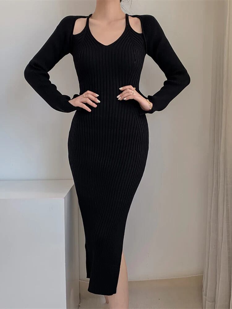 送料無料 アパレル EVNISI Frauen Solide Strick Zwei-stück セット Kurze プルオーバー Schal Und Dünne Lange Hosenträger Kleid Set Bodycon Split Stricken kleider ソリッドカラー AE12125556697522186919 | mihatudai(みはつばい)ネットショッピングならmihatudai