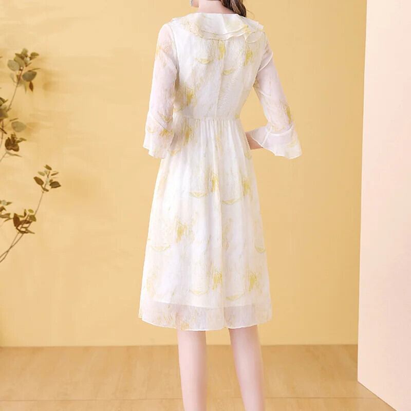 送料無料 アパレル Evnisi Frühling Frauen Aprikose Blumen druck Chiffon Kleid V-Ausschnitt schlankeエレガントBüro A-Linie Kleider für Frauen Party Vestido 2024 シフォン AE12125556637260159214 | mihatudai(みはつばい)ネットショッピングならmihatudai