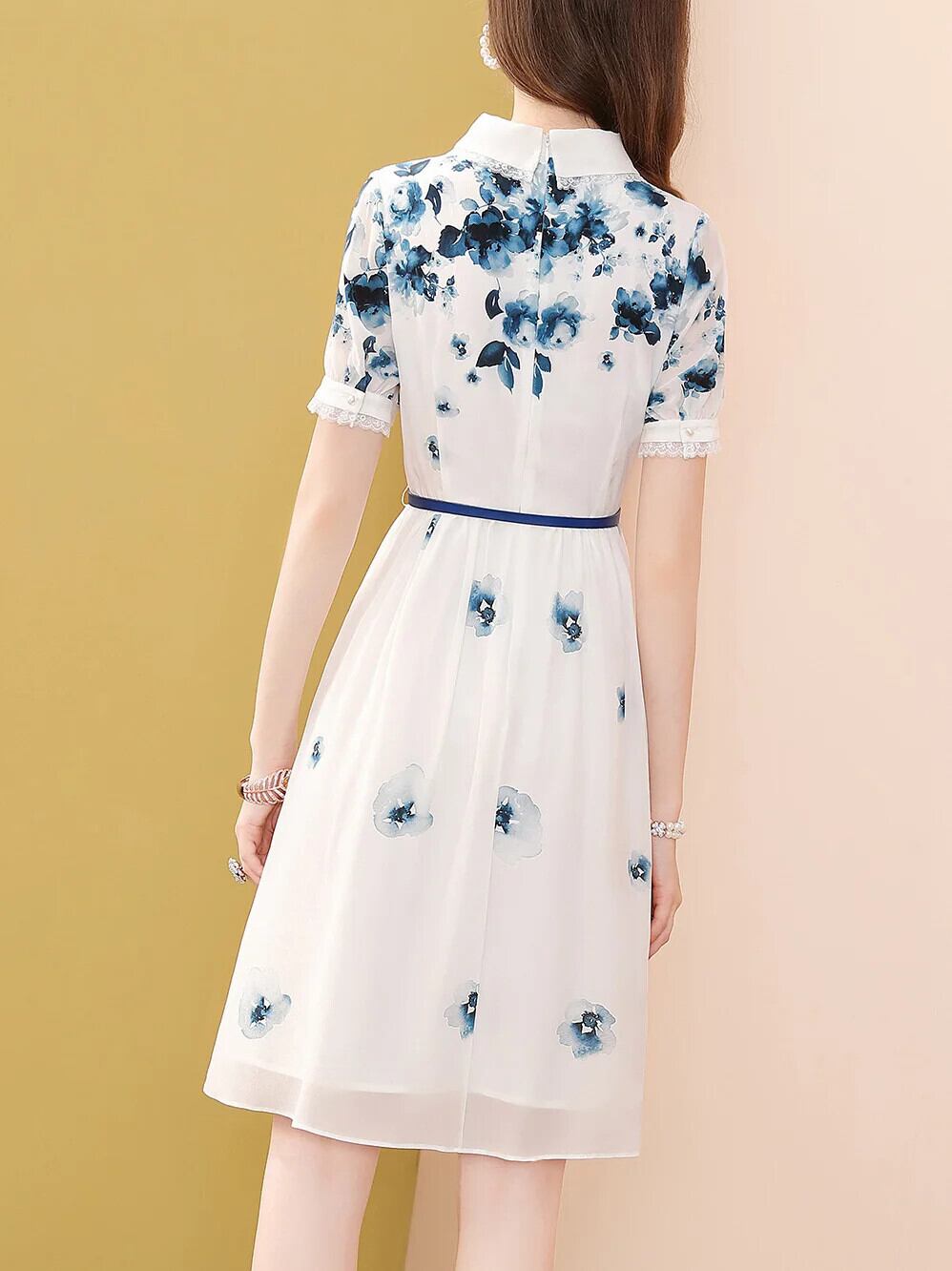 送料無料 アパレル Evnisi e Vrouwen Witte Chiffon Jurk Riem Chic PrintKantoor A-Lijn Jurken Grote Swing Voor Vrouwen Feest Vestido Zomer シフォン AE12125556692434225219
