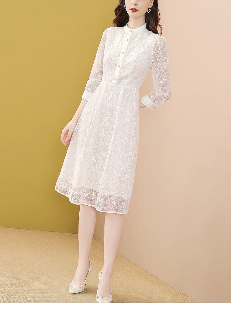 送料無料 アパレル Nur Plus Weiß Spitze Kleid Frauen 2022 Frühling e Lange ärmeln Haken Blume Hohl Kleider Einreiher Büro Dame robe AE12125556614101446311 | mihatudai(みはつばい)ネットショッピングならmihatudai