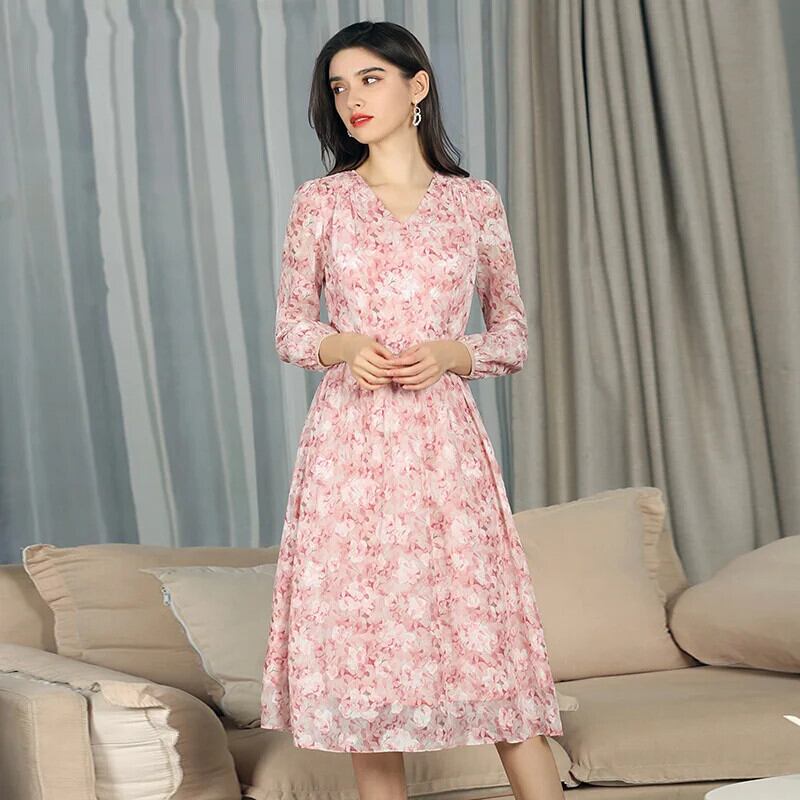 送料無料 アパレル EVNISI Süße Rosa シフォン フローラル Kleid Frauen Frühling Und Sommer 2022 Kleid Neue Französisch V-ausschnitt Kleider Floral Vestidos 花柄 AE12125556698026257016 | mihatudai(みはつばい)ネットショッピングならmihatudai