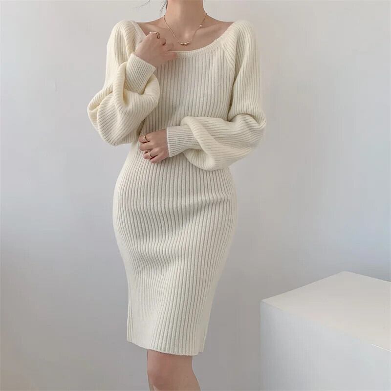 送料無料 アパレル EVNISI Frauen Winter Blase Hülse Gestrickte Kleid Party Hohe Taille ボディコン Kleider Dame en Platz Kragen プルオーバー Vestidos ウィンター 冬物 AE12125556626199394601 | mihatudai(みはつばい)ネットショッピングならmihatudai