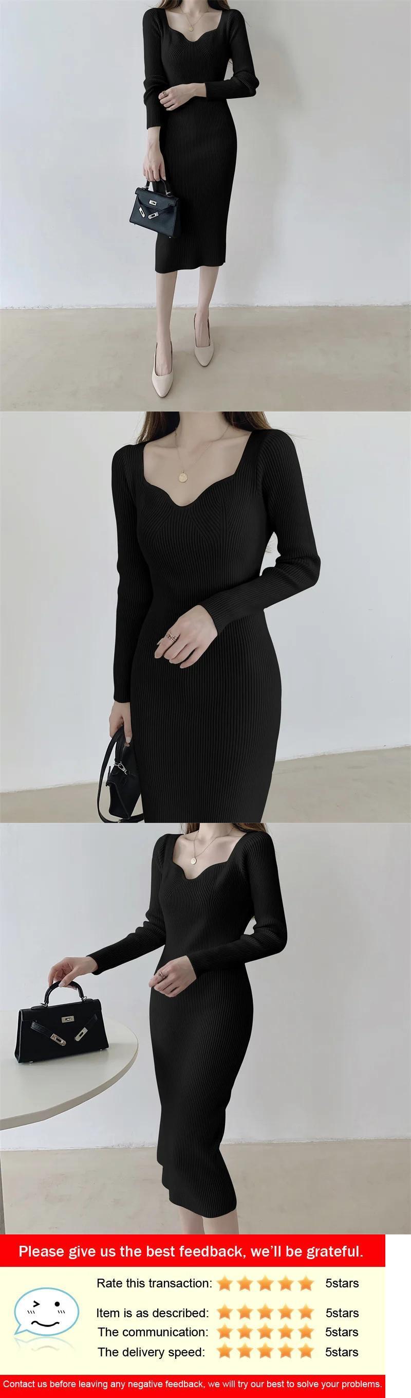送料無料 アパレル EVNISI Chic Frauen Gestrickte Kleid Quadrat Kragen Lange Hülse ボディコン Kleid Party Club e Für Frauen Vestidos AE12125556628253699268 | mihatudai(みはつばい)ネットショッピングならmihatudai